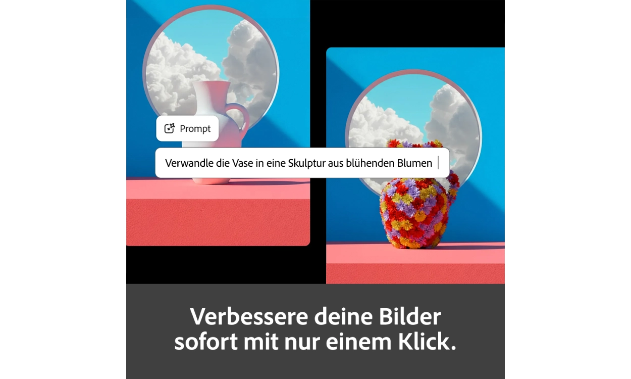 Mit Funktionen wie Generative Fill kannst du ganz einfach neue Elemente hinzufügen oder Teile eines Bildes entfernen. Du beschreibst, was du ändern möchtest, und die Software verarbeitet es sofort. So kannst du schnell brauchbare Ergebnisse erzielen, selbst ohne umfangreiche Designkenntnisse.