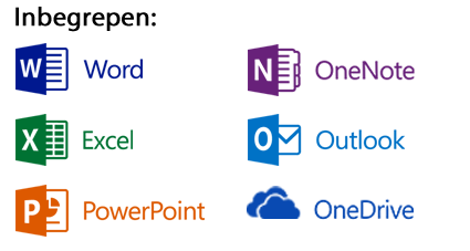 Contains: Word, Excel, Powerpoint, OneNote, OneDrive, Outlook