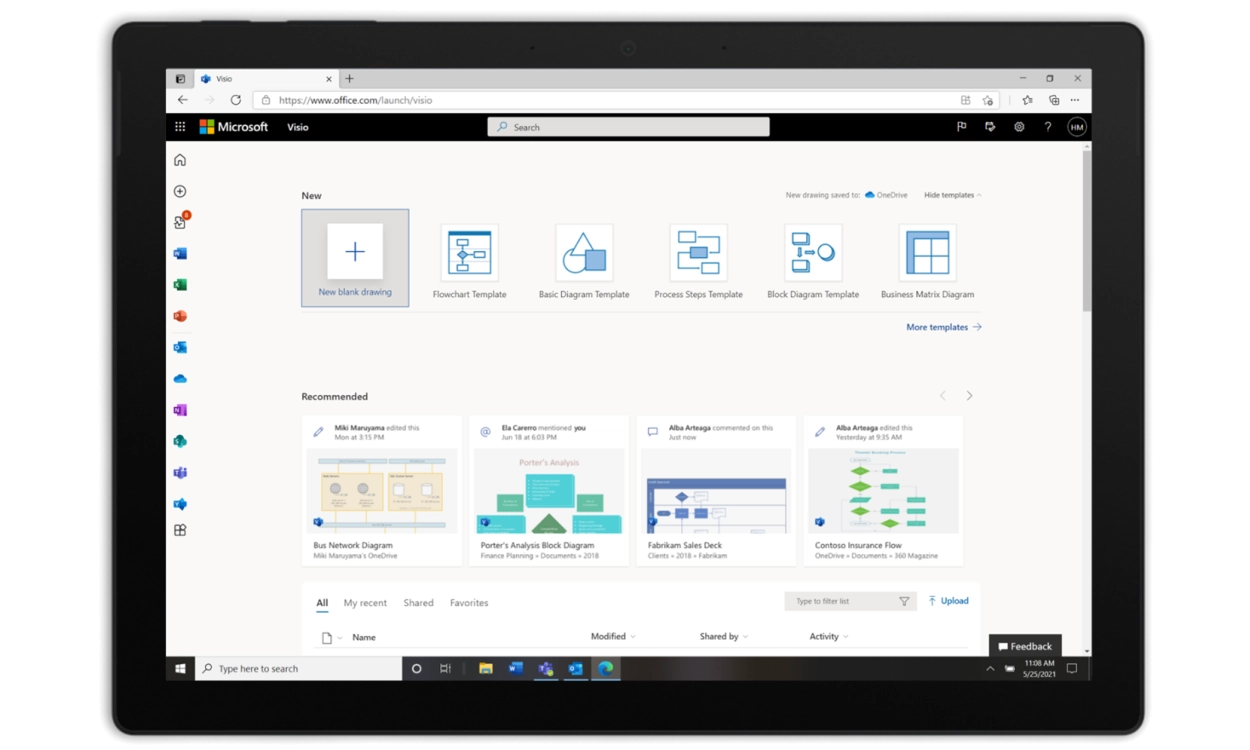 • Support for industry standards: You can now leverage the extensive library of Visio templates for industry-standard content, including UML 2.5, BPMN 2.0, and SDL.