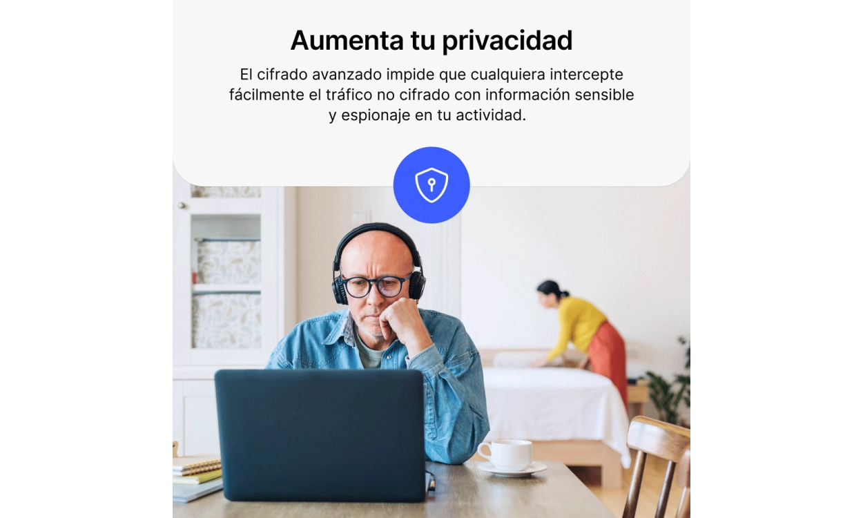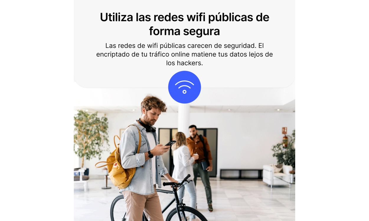 - Asegura tu conexión en wifi: Las redes wifi públicas pueden ser peligrosas, pero NordVPN Básico encripta tu tráfico de internet, incluso en redes inseguras en cafés o aeropuertos, así que te mantienes protegido de los hackers.
