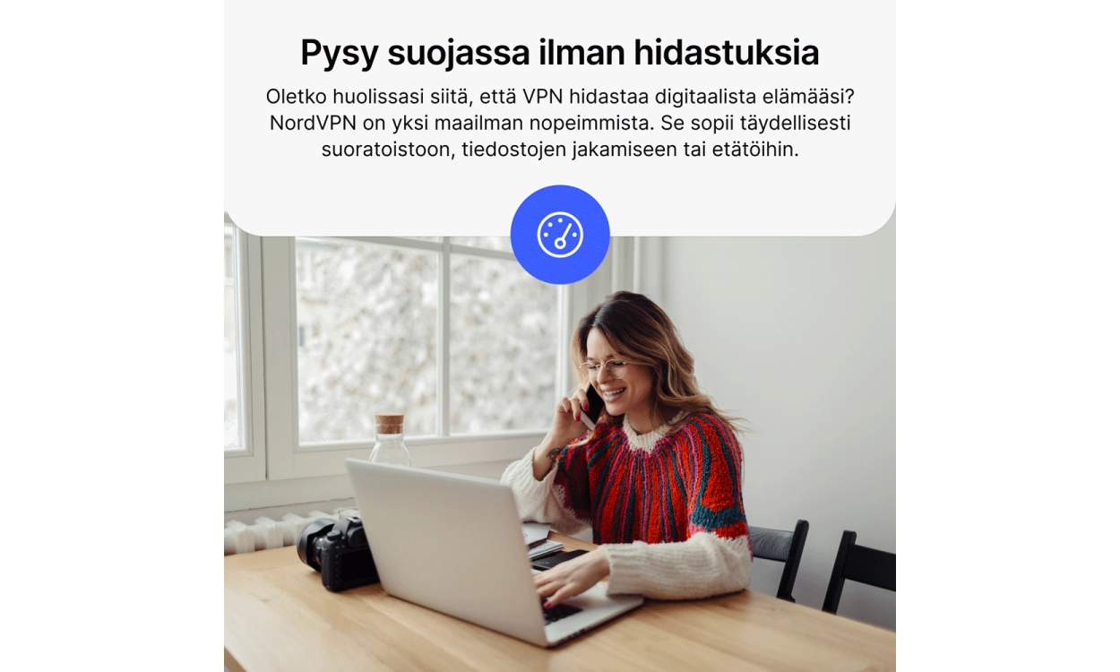 VPN:n avulla voit piilottaa todellisen IP-osoitteesi ja ottaa käyttöön toisen, mikä antaa sinulle pääsyn verkkosivustoihin ja online-palveluihin, jotka muuten voisivat olla estettyjä. NordVPN Basic tarjoaa sinulle turvallisen ja salatun yhteyden ilman nopeuden uhraamista.