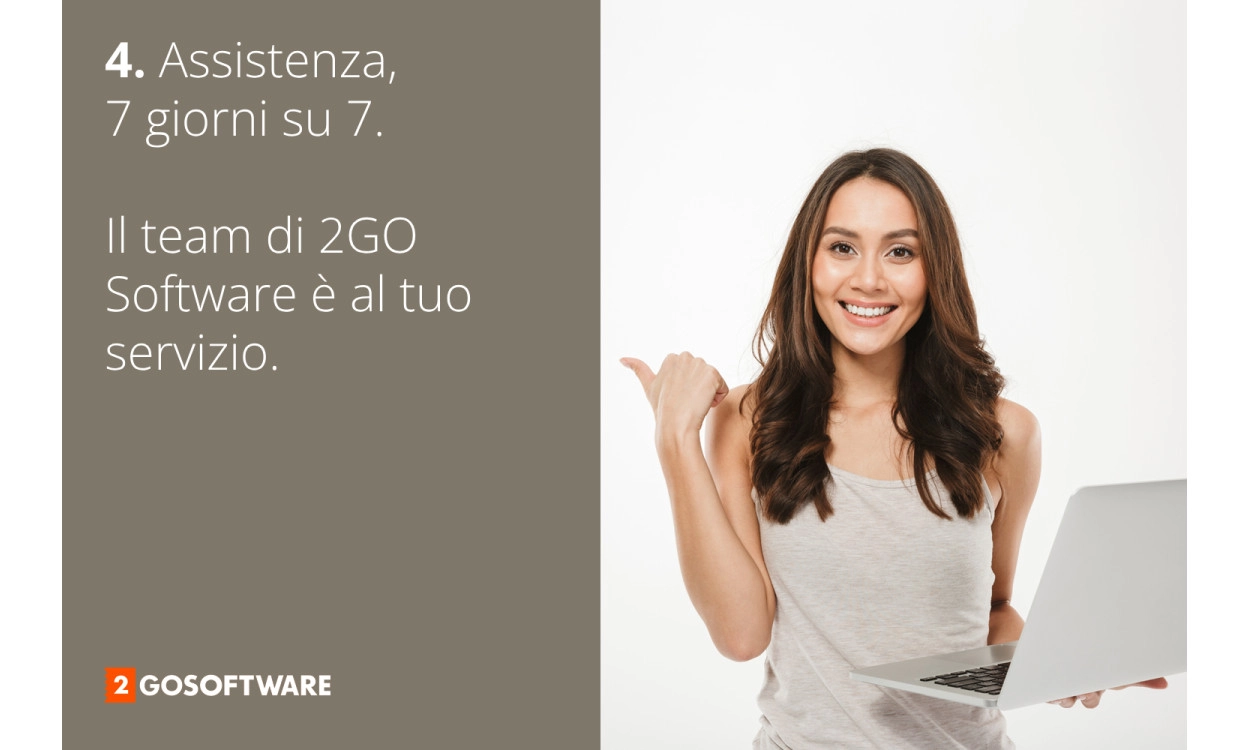 Quando acquisti il Pacchetto Business All-in-one 2GO Software, non stai solo comprando software. Stai acquistando servizio, guida e certezza: