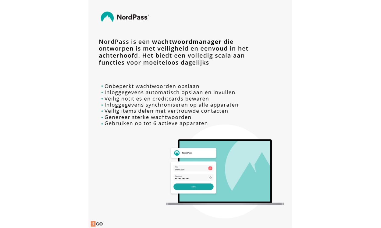 - NordPass: onthoudt en slaat jouw wachtwoorden op in een veilige kluis. Daarnaast zorgt de data breach scanner ervoor dat je op de hoogte wordt gehouden als je wachtwoorden, e-mailadressen of creditcardgegevens in een datalek opduiken en hoe dat dan gebeurd is.