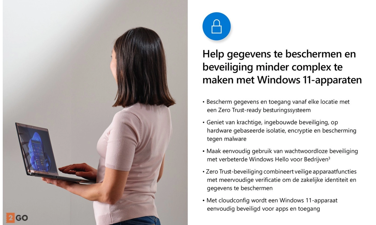 Maak gebruik van de beste versie van Windows tot nu toe! Hierin maakt je gebruik van de nieuwste technologieën die Windows te bieden heeft. Op een simpele manier creëer je binnen no-time een virtuele machine met de nieuwste Hyper-V Client technologie. Met een zakelijke computer is het erg belangrijk dat alle bestanden die hierop staan beveiligd zijn tegen diefstal. Versleutel jouw harde schijf met Bitlocker en een beveiligde bootup. Hiermee ben je er zeker van dat jouw belangrijke bestanden beveiligd zijn. Hiernaast beschikt Windows 11 Home ook nog over de ideale functie van Extern Bureaublad. Hiermee kan vanaf een andere computer worden verbonden met jouw computer.